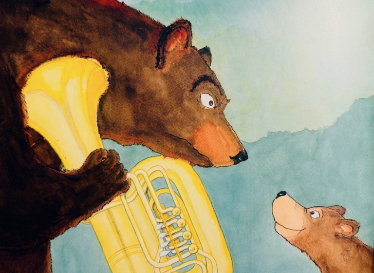 Ferdinand der kleine Bär, beschliesst, ihr ein Ständchen zu spielen.